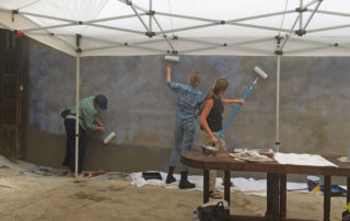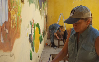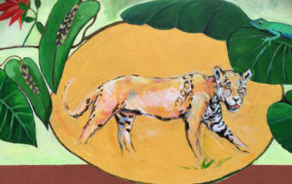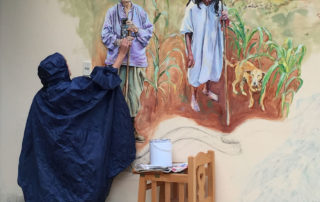 Decades later, when The Lower Eastside Girls Club asked me to accompany them to San Cristóbal de las Casas to paint a mural of both Trudi and Chan K’in Viejo at Na Bolom, I felt it was time to travel full circle. While I have been working primarily on portraits of Trudi and Chan K’in Viejo and Na Bolom’s iconic jaguar, accompanying artist, Megan Kindsfather has been working on portraits of Franz Blom and his and Trudi’s adopted daughter, Doña Beti, who still lives at Na Bolom today. In addition, Club Balam and other affiliates of the Lower Eastside Girls Club have lent their hands in painting detailed flora and fauna.